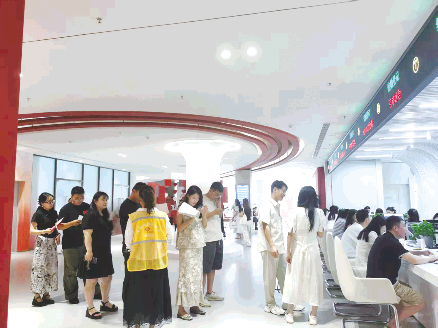 8月29日七夕节,日照市东港区婚姻登记处服务大厅里,不到8点,预约好的新人已有序排队,比平日上班时间提前30分钟开启的浪漫通道,让节