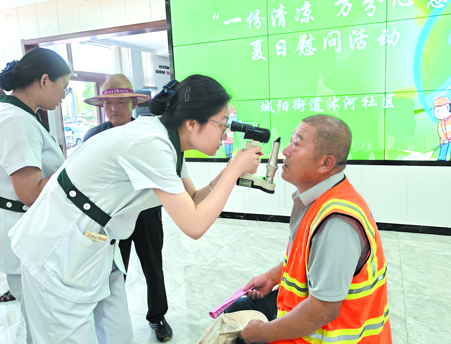 为表达对环卫工人的关爱与敬意,近日,莒县城阳街道沭河社区组织开展一份清凉 万分心意慰问环卫工人公益活动,为他们送去一丝清凉和一份健