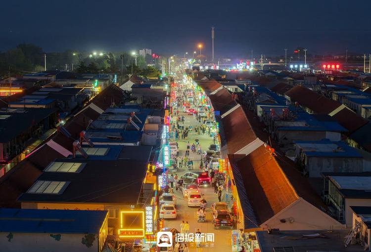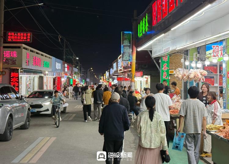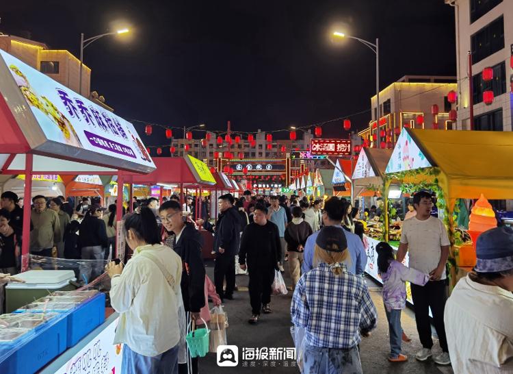 夜幕降临,乔家墩子“这有海”星光市集点亮灯火。近百家小吃摊位升腾起袅袅炊烟,沿着道路蜿蜒排布,烧烤的烟火气与蒸汽海鲜的鲜香交织,长长的小吃街人潮涌动、摩肩接踵,游客手持各色小吃穿梭于商户间。
