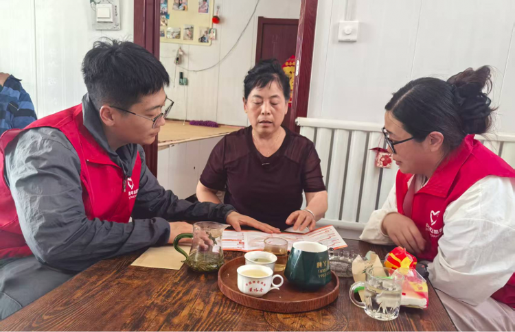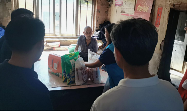 在阎大爷家中,志愿者们送上了精心准备的大米、白面和一份心意满满的慰问金。志愿者们围坐在老人身边,亲切地拉家常,细致询问他的身体状况、生活中遇到的困难以及迫切的需求,将关怀送到心坎上。