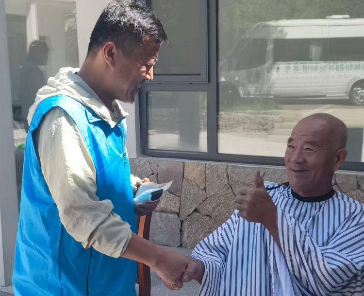 活动中,日照市聋协主席、理发师李茂胜也格外忙碌。他提前备好理发工具,为老人们修剪头发。虽无法用言语交流,但他通过手势询问需求,手法娴熟又细致。看着镜中清爽的发型,老人们感受到别样的温暖,纷纷笑着竖起大拇指。