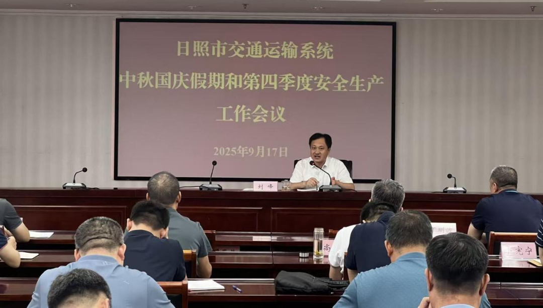 9月17日,日照市交通运输局组织全市交通运输系统收听收看交通运输部、省交通运输厅2025年中秋国庆假期和四季度安全生产视频会议。为深入贯彻会议精神,市交通运输局接续召开全市交通运输系统中秋国庆假期和四季度安全生产工作会议,安排部署中秋国庆假期和四季度安全生产工作。市交通运输局党组书记、局长刘峰出席会议并讲话。