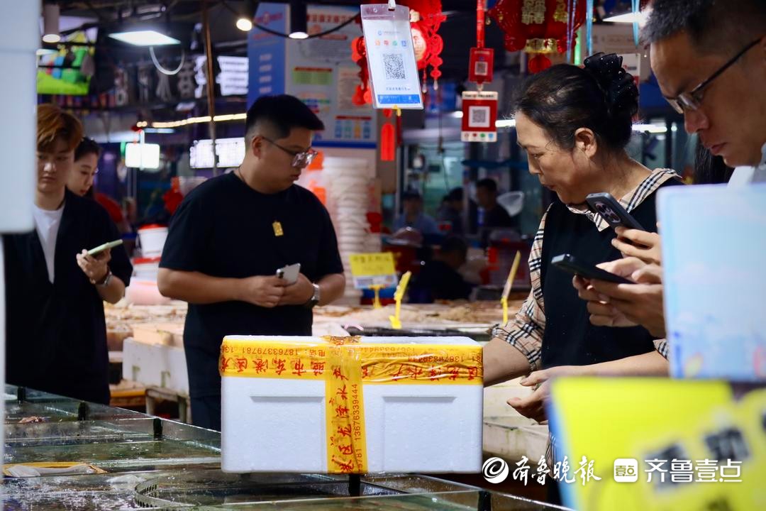 如此火爆的市场,不仅吸引了本地市民,还引来了外地游客。从天津来的王先生对日照海鲜市场赞不绝口:“日照海鲜市场棒极了!今天买了龙虾、扇贝、鲅鱼,准备买上海鲜直接回天津,让家人也尝尝日照的鲜味。”