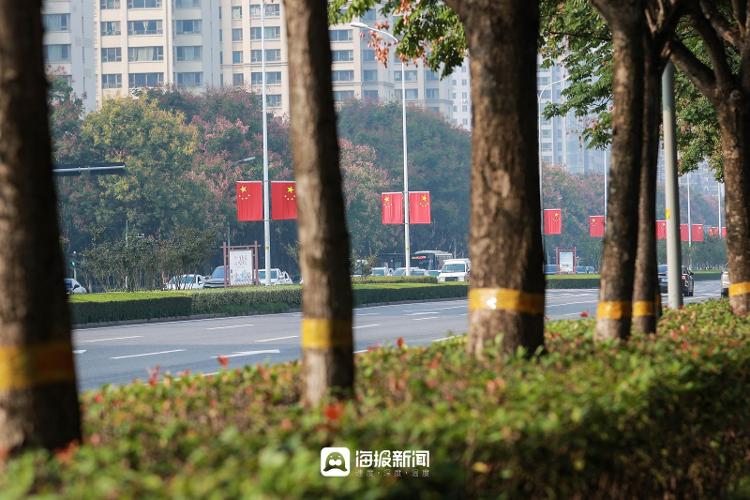 一面面鲜艳的五星红旗沿路灯杆次第悬挂,在微风中飒飒作响,将海滨城市的蓝天碧海衬得愈发灵动,提前点燃了国庆氛围。