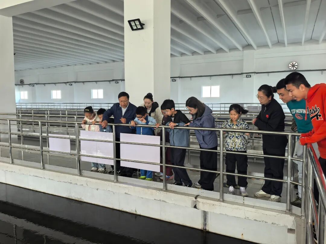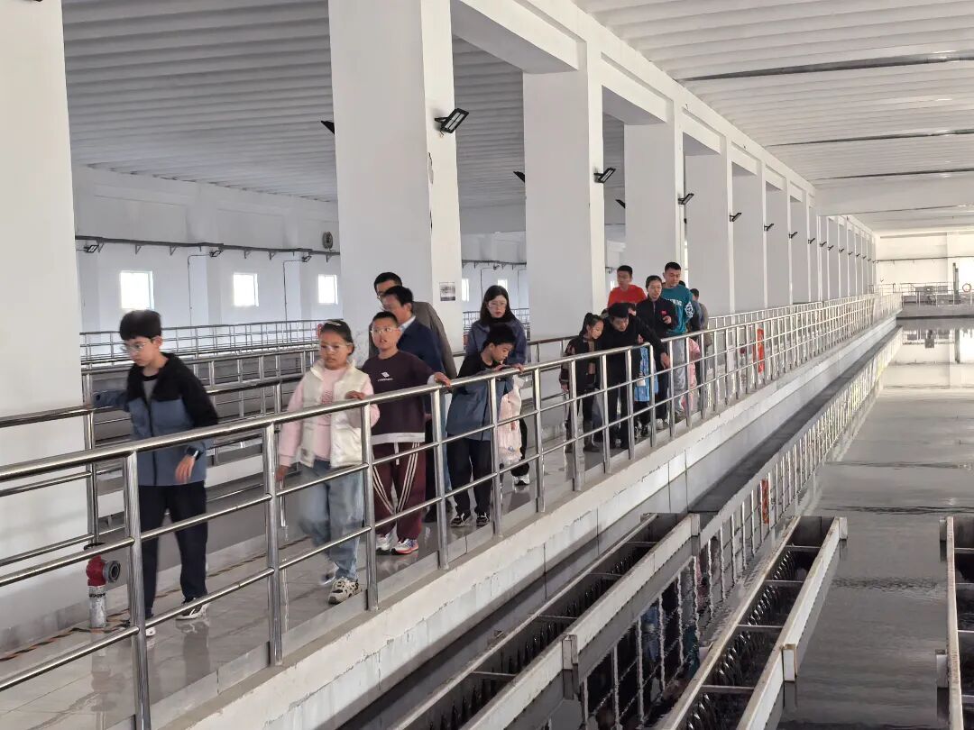 在讲解员的引导下,大家共同探秘“水循环”的神奇之旅,依次参观了平流沉淀池、V型滤池以及中央控制室等核心生产区域,从操作间的精密仪器到V型滤池的层层过滤,从清水池到送水泵房的轰鸣运转,看着原水经过一道道严谨的工艺,最终变得清澈见底,每个环节都引发阵阵惊叹。社团成员们结合自身工作,不时为孩子补充讲解,现场化身为生动的“第二课堂”。孩子们感慨:“平时只知道拧开水龙头就有水,今天才真正明白,每一滴干净的自来水背后,是水厂24小时的坚守和复杂的工艺流程,更让我们深刻认识到节水护水的重要性。”此次活动不仅是一次深刻的水情教育与科学普及,更是让大家通过亲眼所见在心中埋下了珍惜水资源、保护水环境的种子。