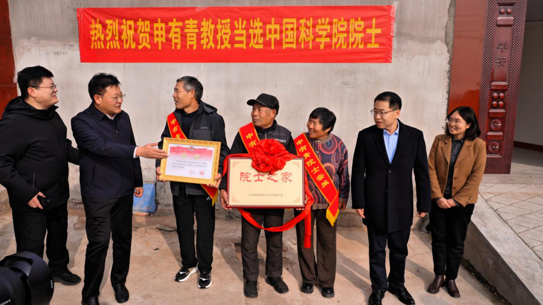 在乡亲们的共同见证下,申有青院士的亲属郑重接过喜报和“院士之家” 牌匾。莒县县委常委、组织部部长王传国对申有青当选中国科学院院士致以热烈祝贺,向其家属转达了市委市政府、县委县政府的亲切慰问,并现场连线申有青院士。