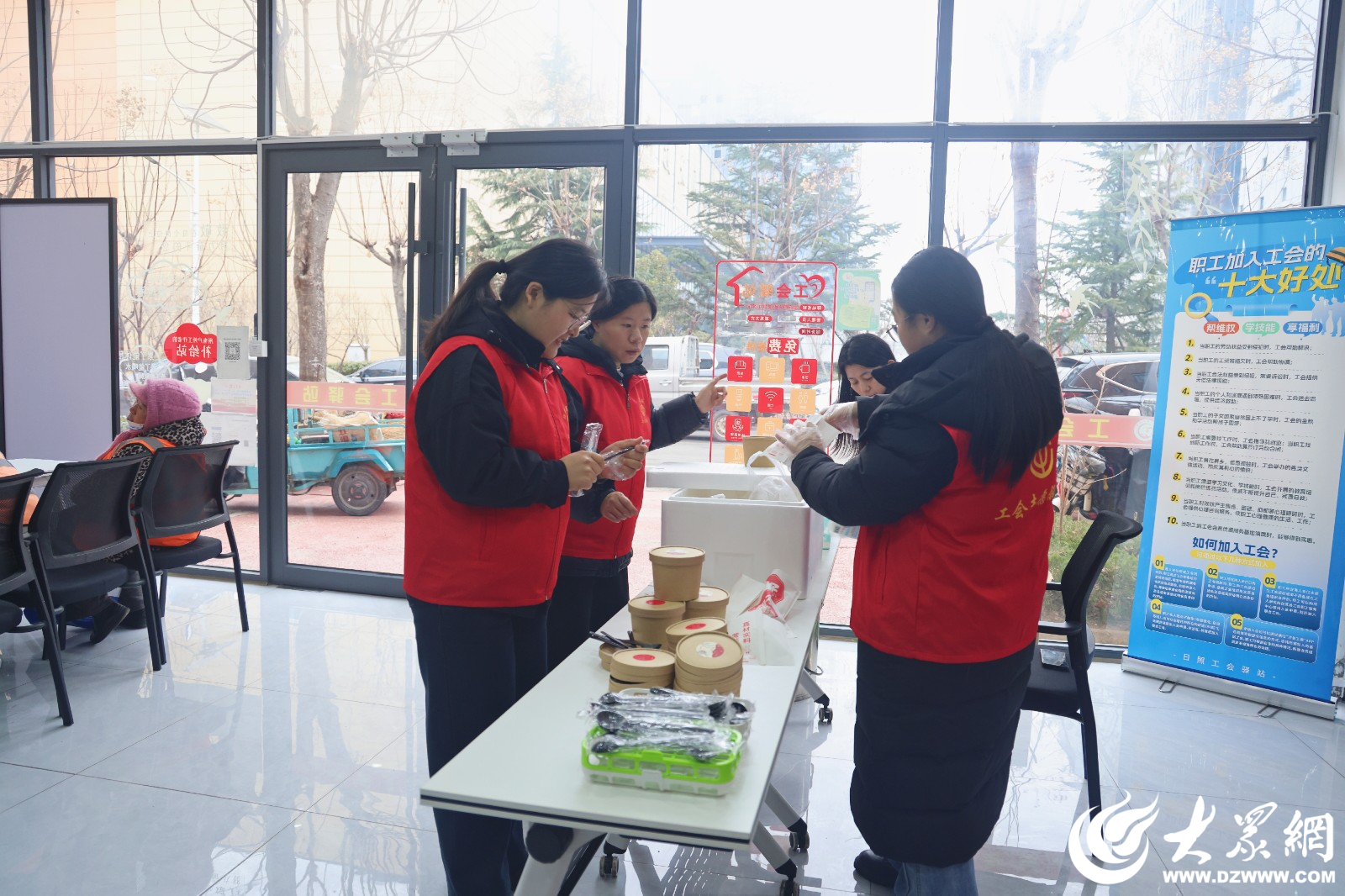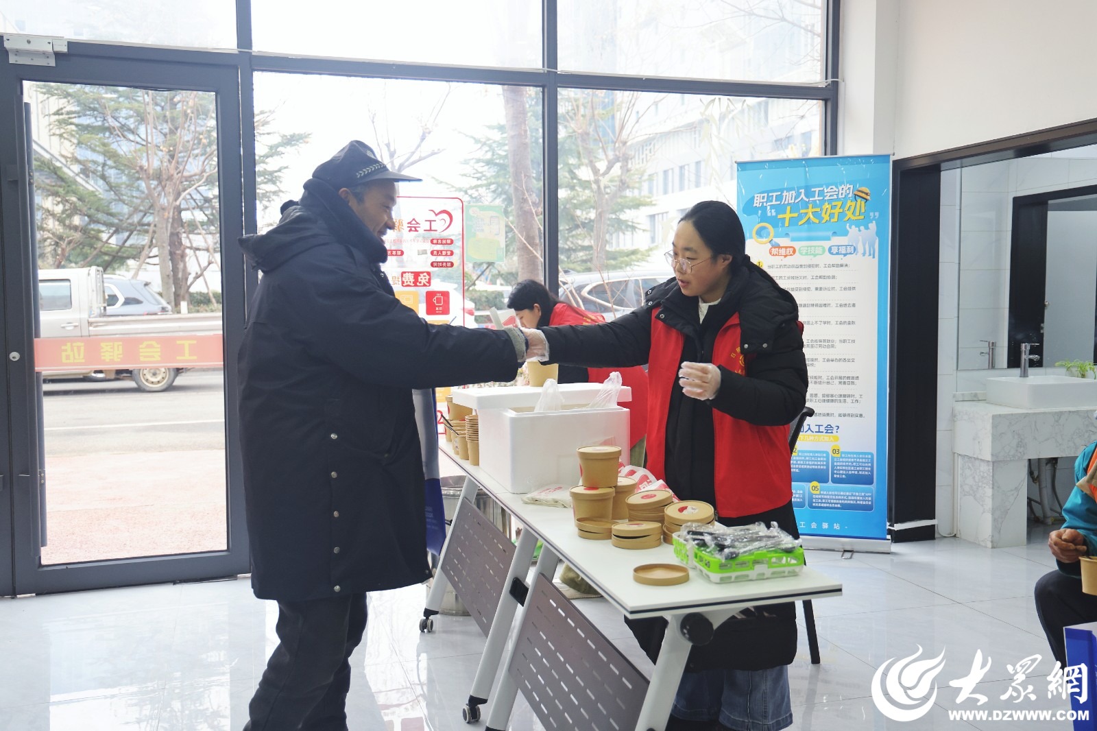 为弘扬中华传统民俗文化,传递工会组织对户外劳动者的关怀与问候,1月26日,日照高新区创业基地工会驿站开展了温馨洋溢的腊八节送温暖活动。工作人员将一碗碗热气腾腾的腊八粥递到户外劳动者手中,让大家在寒冬时节真切感受到“娘家人”的温暖与牵挂。
