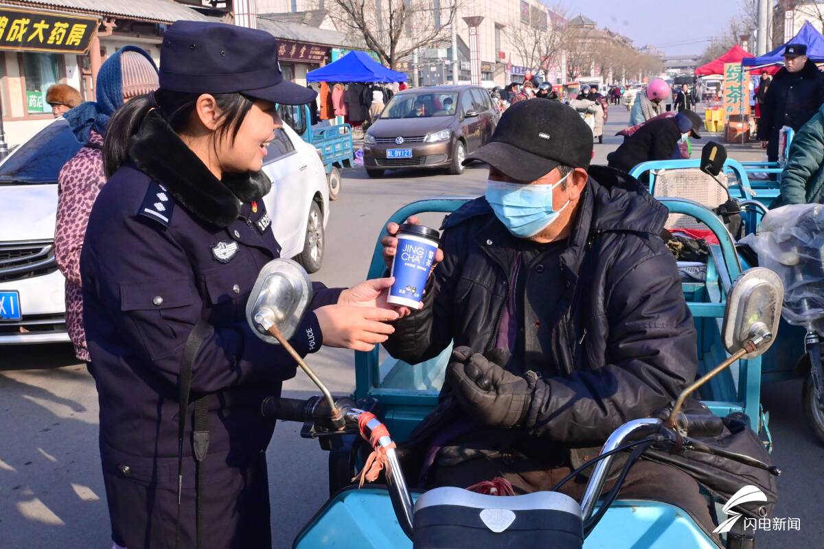 “大叔,喝口热茶暖和暖和。一会儿骑车回去,头盔一定戴好!”民警递上一杯“警茶”,送上交通安全叮嘱。一杯热茶,一句叮嘱,拉近了警民距离,也让安全提醒在温暖互动中深入人心。(来源:闪电新闻)