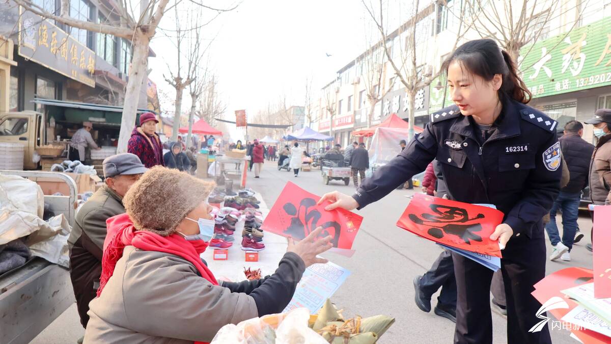 腊月里的乡村大集,吆喝声此起彼伏,年味儿扑面而来。近日,莒县公安局的民警也到大集“出摊”了,在熙熙攘攘的人群中,他们用多样的形式,为大家送上“平安年货”。