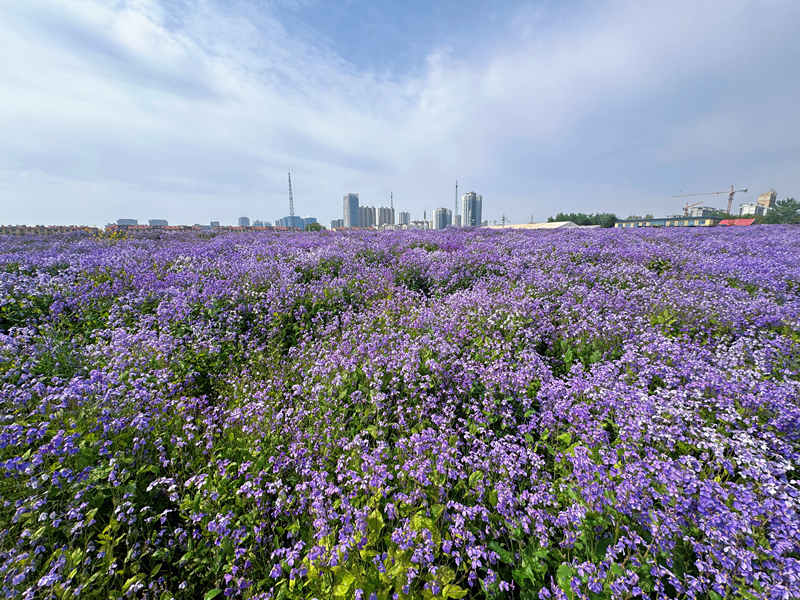 近年来,日照市大力推进碳汇花海建设,通过园林废弃物、污泥发酵制成有机基质改良土壤,将市区多处拆迁待建地、裸露荒地变身花海。二月兰以其顽强生命力,既有效抑制扬尘、涵养水土,又为城市增添色彩,实现“生态修复、景观美化、市民共享”的多重价值。