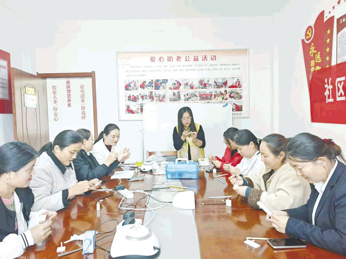 10月17日,莒县城阳街道北坛社区社区微业项目零工市场,针对新引进的穿戴甲手工活技能开展集中培训,全力为居家女性尤其是待就业宝妈群体搭