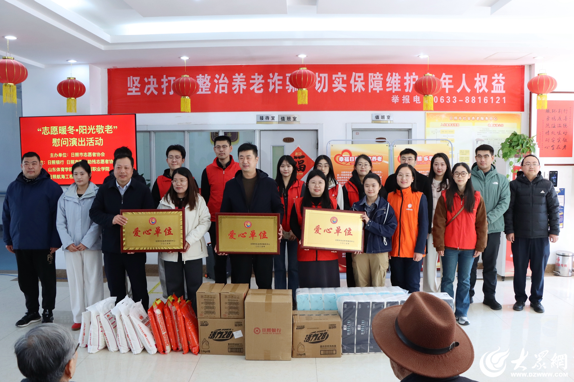 与此同时,一场温暖的敬老行动也在同步展开。志愿者们分别走进市社会养老服务中心与日照街道敬老院,开展“志愿暖冬·阳光敬老”主题活动。在养老服务中心,志愿者们倾情献上文艺演出,《我和我的祖国》的悠扬旋律流淌着深切关怀;在街道敬老院,贴心慰问品传递着质朴温情。活动中,日照市社会养老服务中心特别授予日照银行“爱心单位”称号,这份认可见证了金融向善的温暖力量。