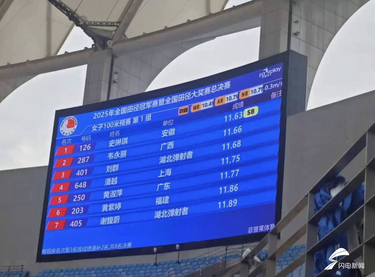 史琳琪和葛曼棋分别获得女子100米预赛小组第一,史琳琪更是以11.63的成绩刷新赛季最佳成绩。