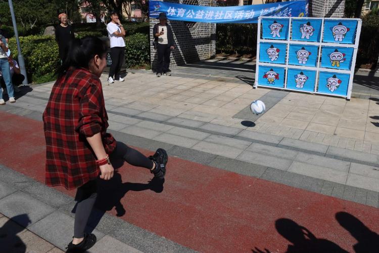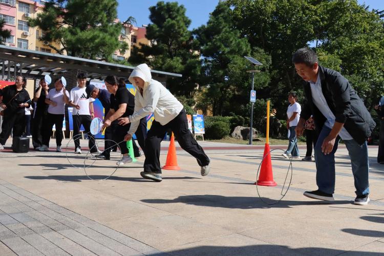 活动现场,立定跳远、托球跑、足球九宫格、滚铁环等趣味项目轮番开展。这些项目既有对个人身体素质的挑战,也有考验团队协作的环节,每个参与者的脸上都洋溢着运动的快乐,社区广场变成了一片欢乐的海洋。