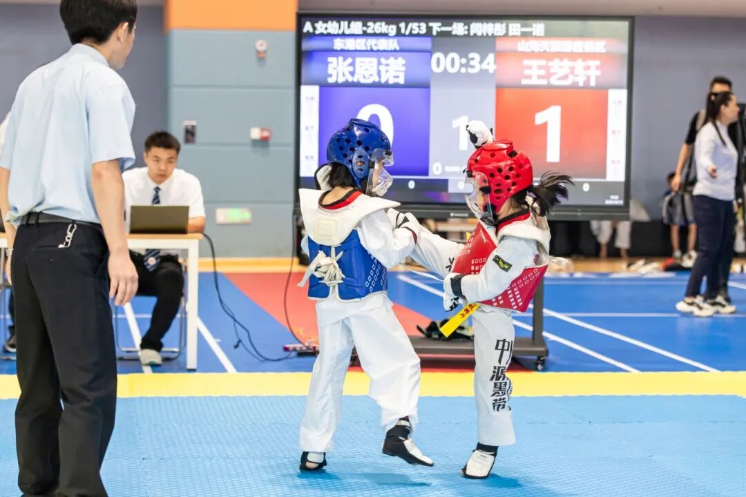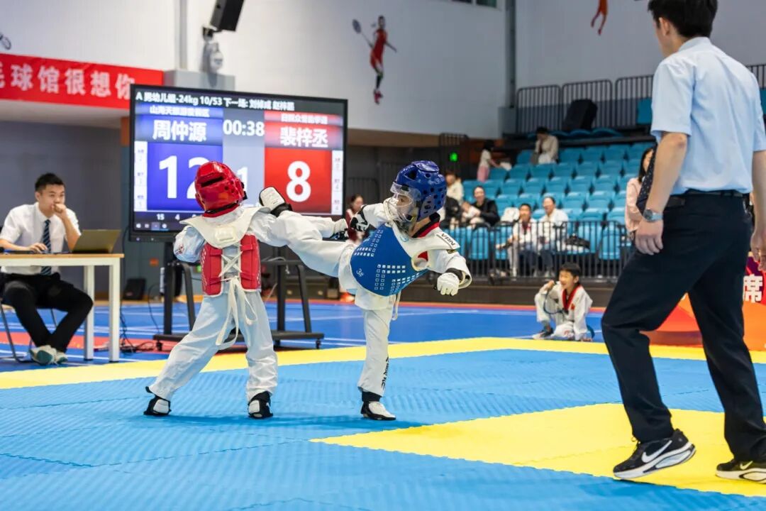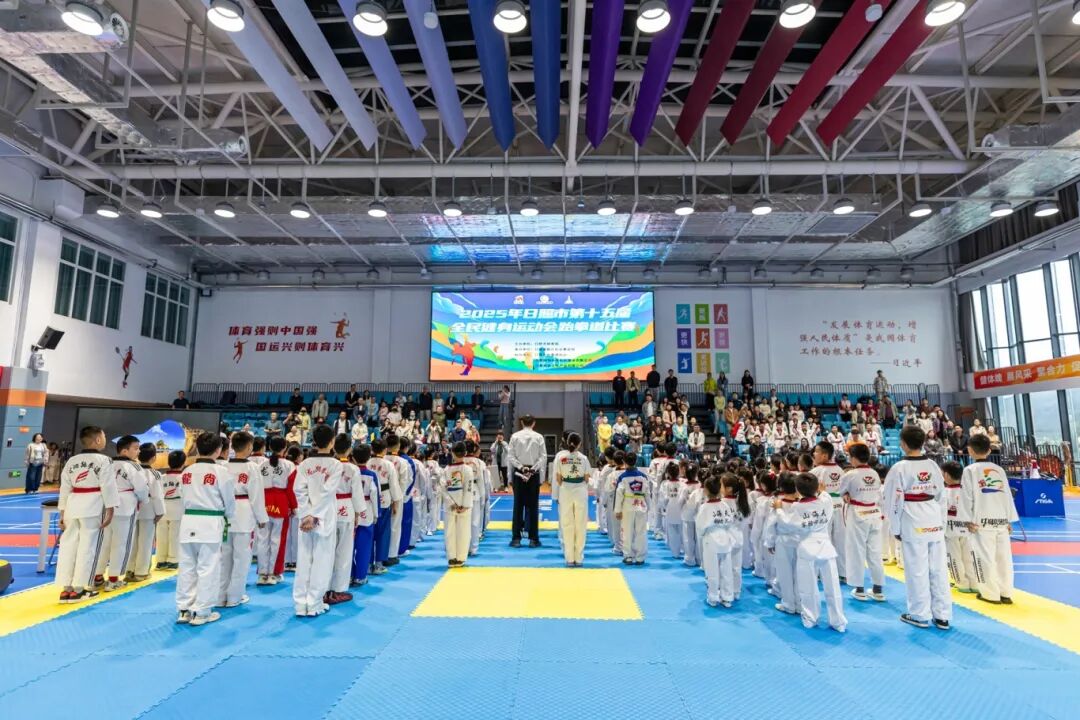 10月12日,日照市第十五届全民健身运动会跆拳道比赛在高新区文体中心火热开赛。本次比赛由日照市体育局主办,日照高新区社会事业局承办,日照市跆拳道协会、日照跆瑞体育组织服务有限公司、日照高新文化产业有限公司协办。比赛设幼儿组、儿童组、少儿组以及电子竞速等组别,吸引了来自全市200余名的跆拳道爱好者参与。