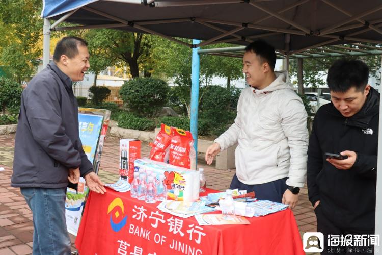 赛场边,同样热闹非凡。汇安健康的服务点前,居民们有序排队,享受着免费的血压、血糖检测服务,体现了社区对居民健康的关怀。济宁银行莒县支行的宣传摊位也吸引了居民驻足咨询,为活动增添了便民利民的色彩。
