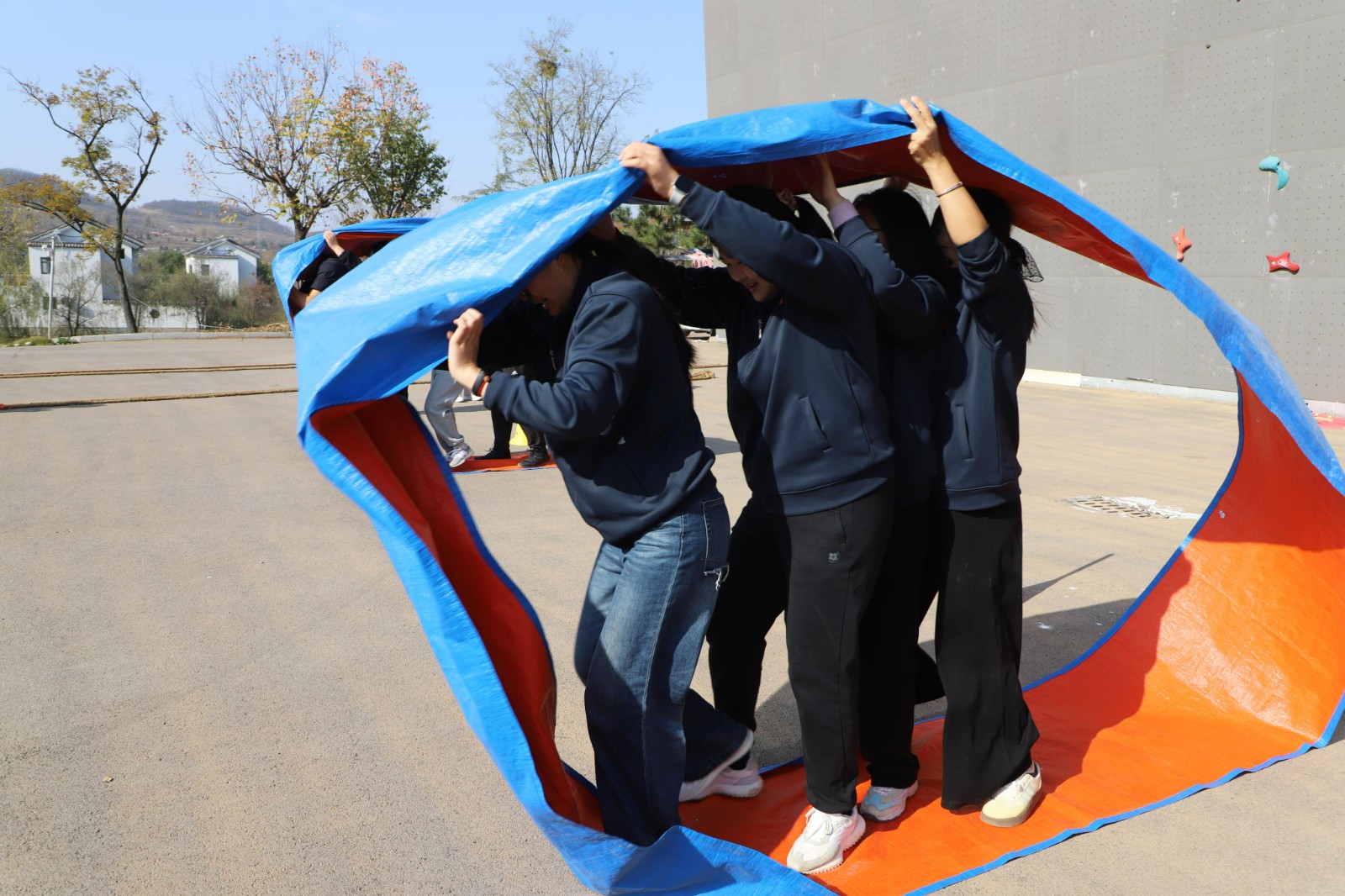 完成登山挑战返回基地后,在教练的带领下,全体人员进行了充分的热身运动,舒活筋骨,为随后进行的运动会比赛储备能量,确保了运动的安全与科学性。