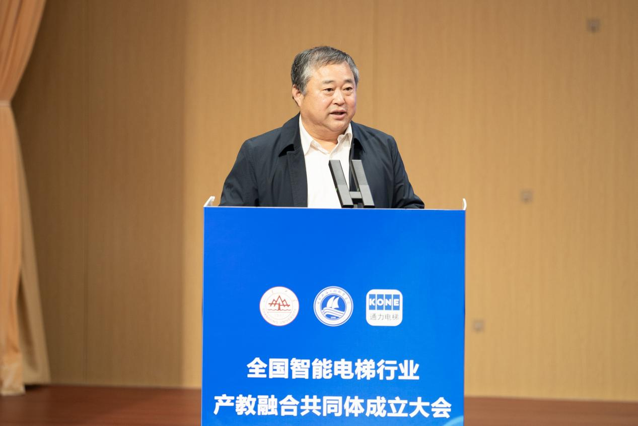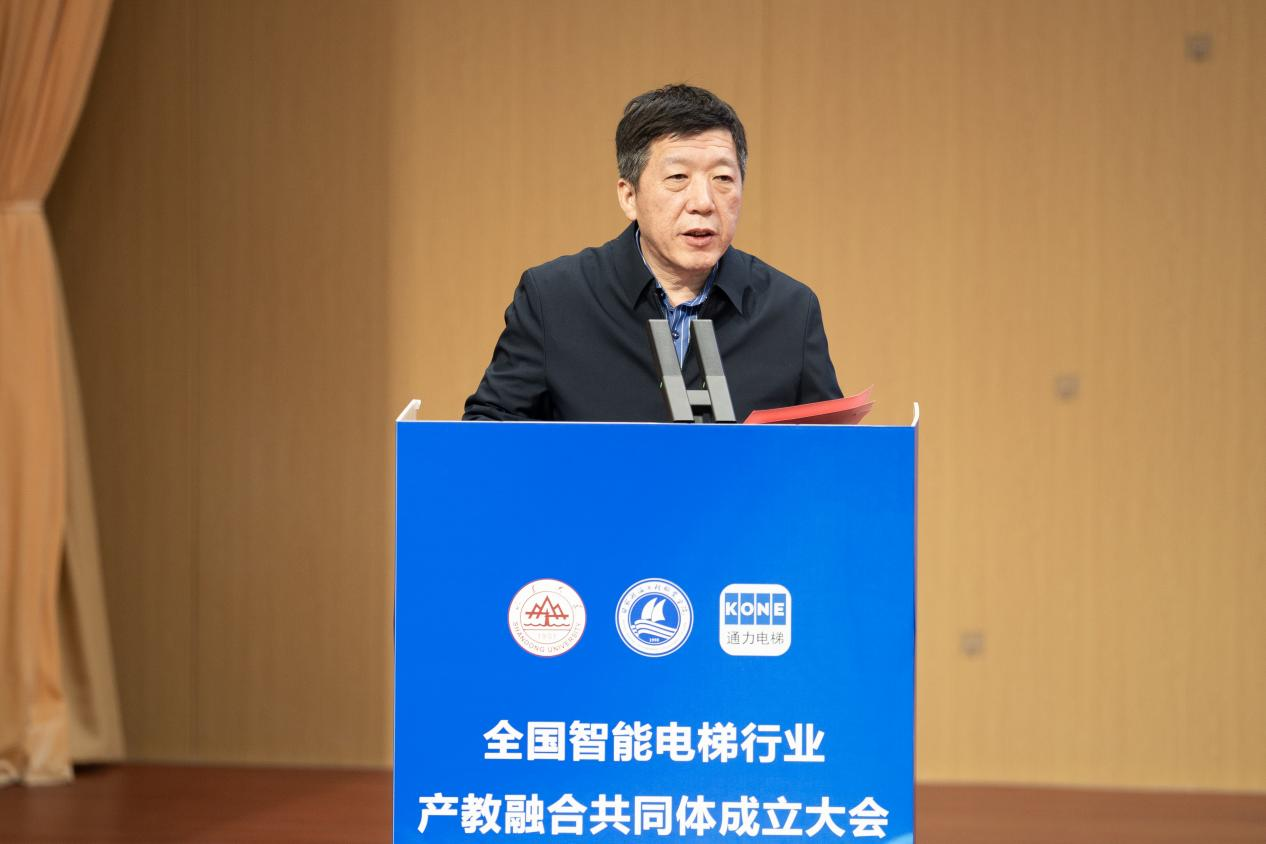 日照航海工程职业学院党委书记高哲学介绍了学院办学特色,尤其是电梯工程技术专业的建设成果。他表示,作为理事长单位,学院将积极推进政校企研深度融合,在师资共享、订单培养、成果转化等方面开展务实合作。