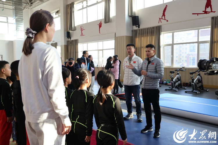12月8日,体操奥运冠军张成龙走进日照高新区实验小学,指导备战第26届省运会的体操项目训练,并与师生展开面对面交流。