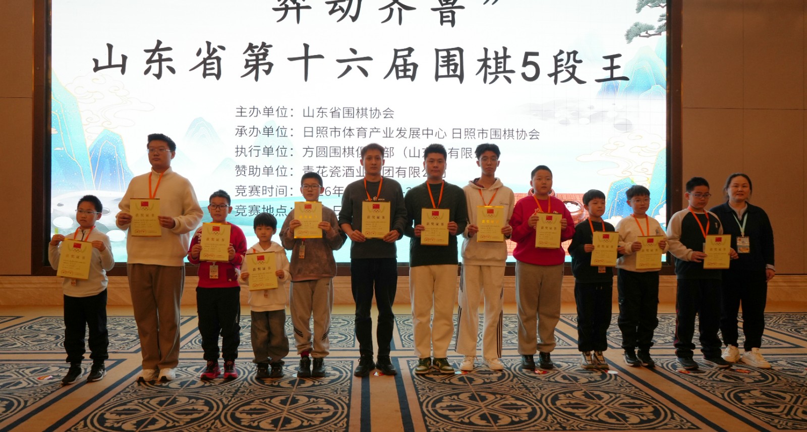 2月25日,“弈动齐鲁”2026年山东省第十六届围棋5段王比赛在日照美悦云禧酒店圆满完赛。本次赛事由山东省围棋协会主办,日照市体育产业发展中心、日照市围棋协会承办。活动吸引了山东省各地市650余名运动员参赛,年龄覆盖7—60岁。