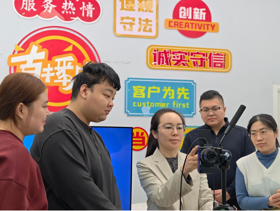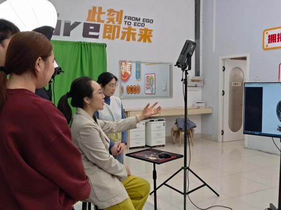 近日,日照龙山黑陶非遗传承人秦慧敏走进山东水利职业学院,在“非遗+电商”培训班上,与学生一同探讨直播拍摄技巧。