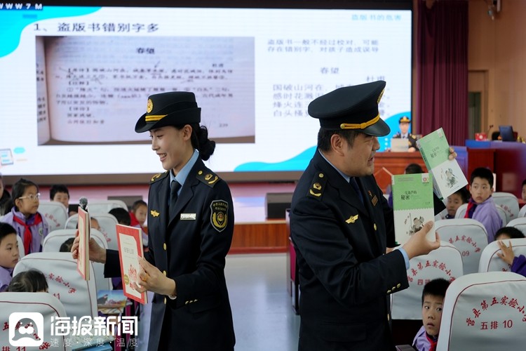 互动体验练慧眼。执法人员带来正版与盗版图书对比样本,组织学生近距离触摸、观察、对比,从纸张质感、印刷清晰度、版权页信息、文字校对等方面,手把手教大家辨别正版与盗版书籍的差异。同时详细讲解盗版图书危害身体健康、侵犯知识产权等多重危害,引导学生们自觉拒绝盗版、远离非法出版物,从心底树立尊重版权、保护原创的意识。