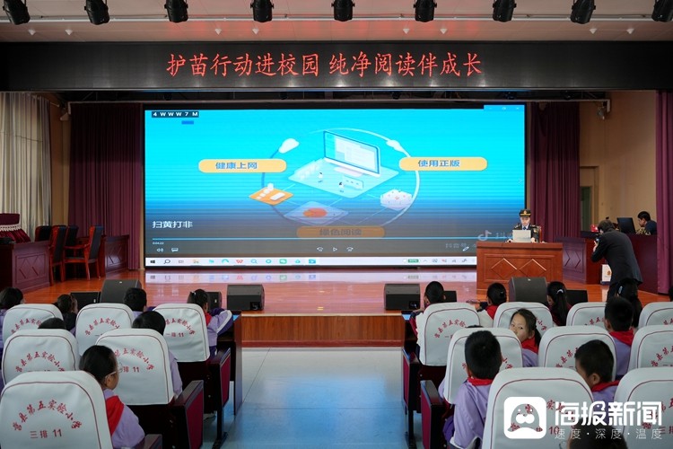 趣味课堂涨知识。活动在生动有趣的“护苗小课堂”中正式拉开帷幕。工作人员通过播放动画视频,用通俗易懂的语言为同学们讲解“扫黄打非”的含义、非法出版物及有害信息的危害,普及全国“扫黄打非”举报电话12390,现场为每位学生发放“绿书签”,倡导大家树立“多读书、读好书、善读书”的阅读习惯,自觉远离不良文化侵害。