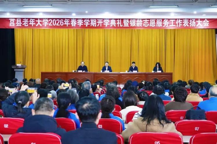 3月17日,莒县老年大学2026年春季学期开学典礼暨银龄志愿服务工作表扬大会在县委党校隆重举行。大会全面总结2025年度工作成果,表扬先进典型,部署新学期任务,动员广大银龄群体以更加昂扬的姿态投身老年教育与志愿服务事业,为“古韵莒县、现代新城”建设贡献银龄力量。