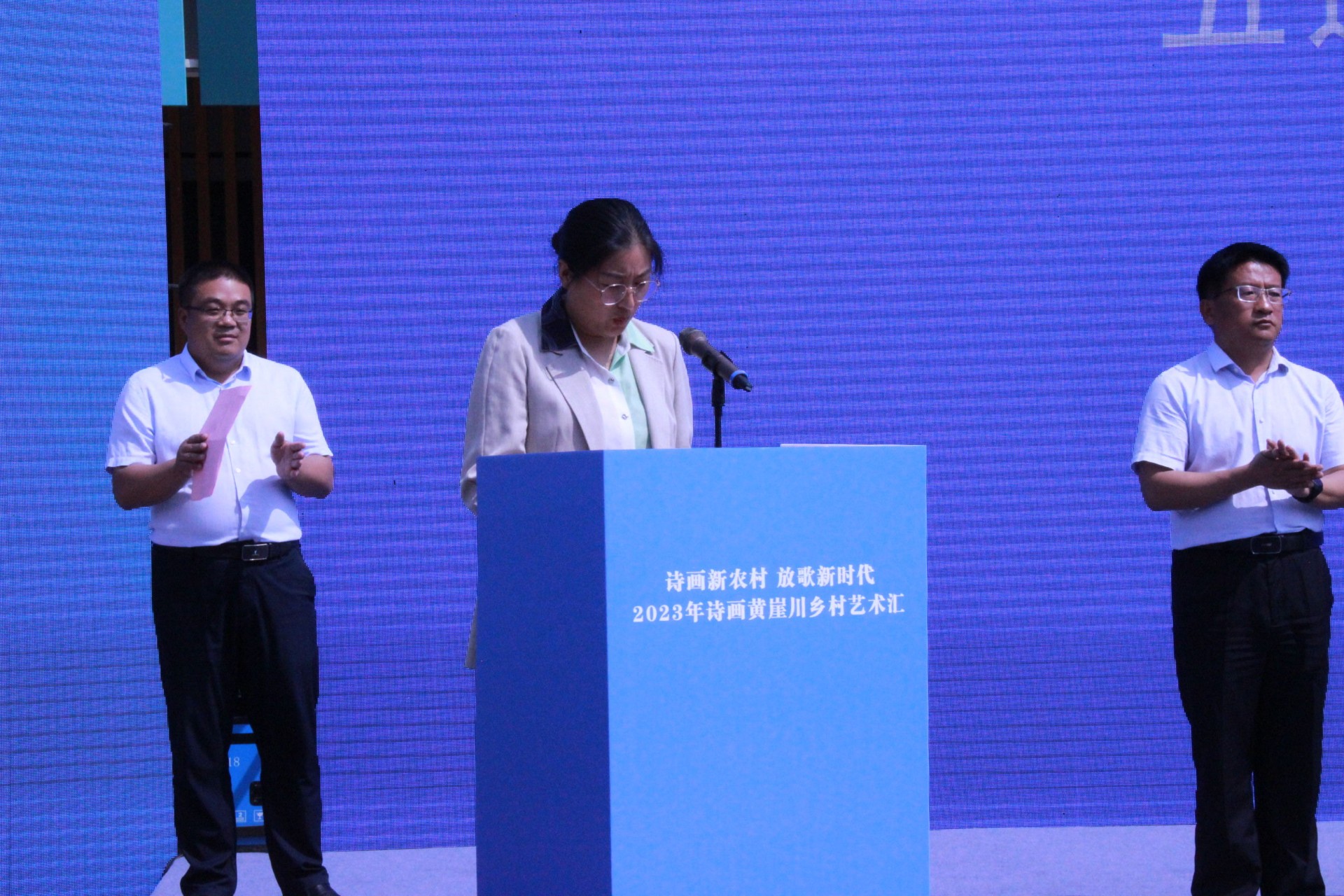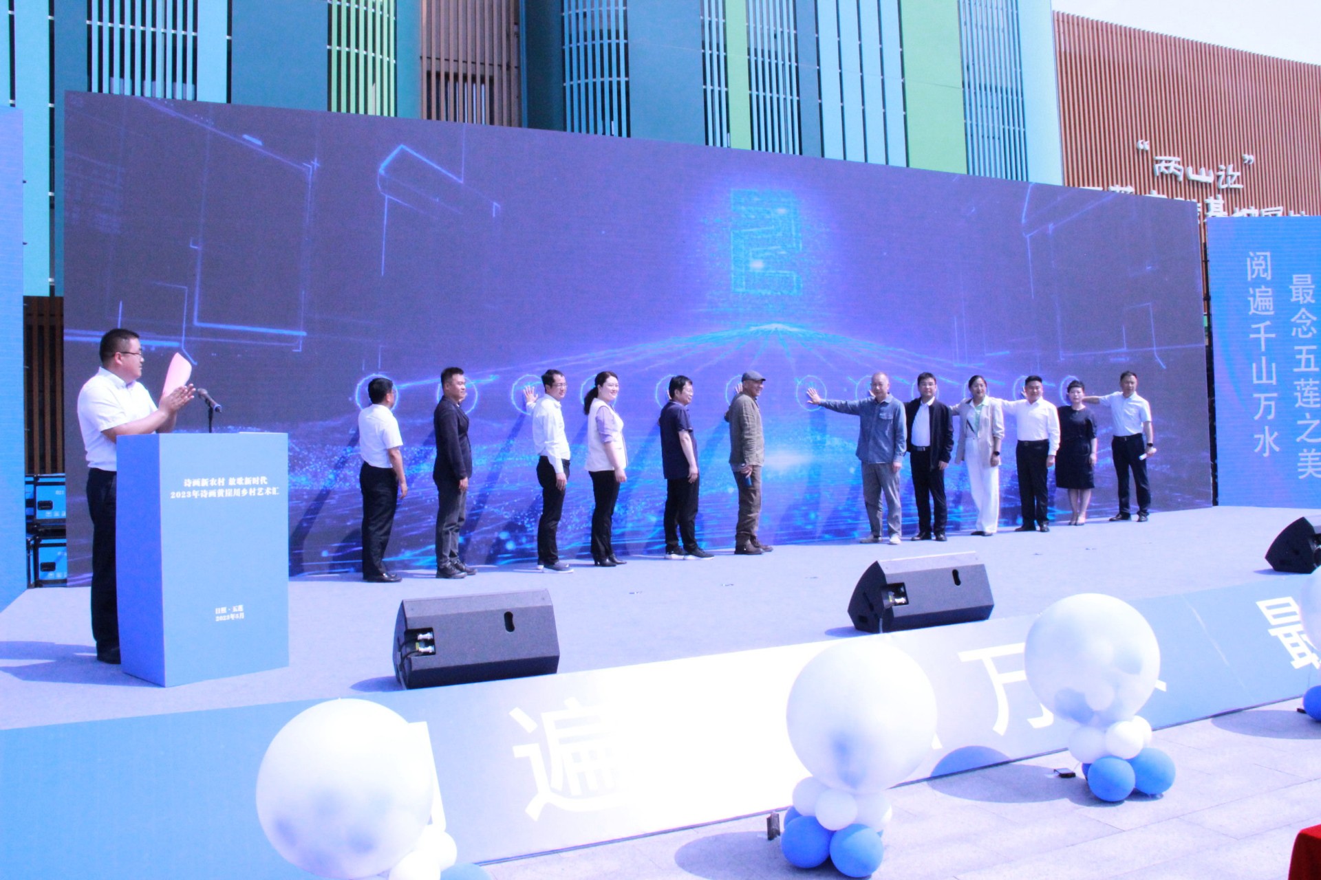 为推动文化艺术融入乡村生活,助推户部乡写生研学产业发展,搭建文化助力乡村文化振兴平台,5月14日,“诗画新农村 放歌新时代”2023年诗画黄崖川乡村艺术汇在户部乡黄崖川村“两山论”五莲实践基地展馆门前广场开幕。