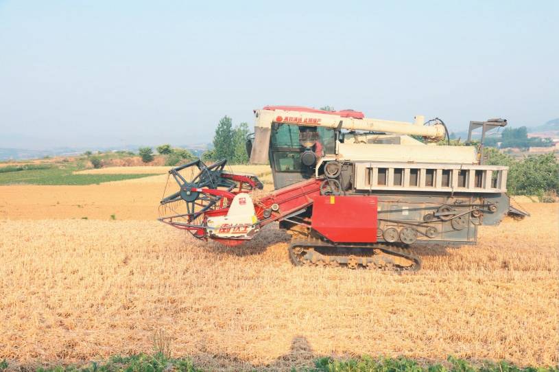 近日,东港区三庄镇茂山村的560亩麦田陆续开镰收割。金黄色的麦浪随风摇曳,传来阵阵麦香,村民们手持镰刀,在田野里抢收小麦。联合收割机也在田间来回穿梭,机械化作业提高了收割效率,现场呈现一派繁忙有序的丰收景象。(来源:直播日照)