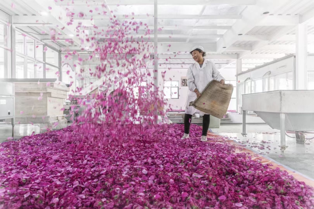 乡村振兴,产业为要。近年来,在镇党委、政府的引导支持下,刘家坪村创新探索“党支部领办合作社+企业+农户”发展模式,将产业发展的目光投向玫瑰种植及加工,着力打造“食用花卉+旅游观光+日化用品”的生态玫瑰产业链。党支部牵头整合土地、人力等资源,企业负责技术研发和市场开拓,农户积极参与种植生产,三方联动不仅破解了农户“种得出、卖不掉”的难题,更让玫瑰成为村民增收致富的“致富花”。