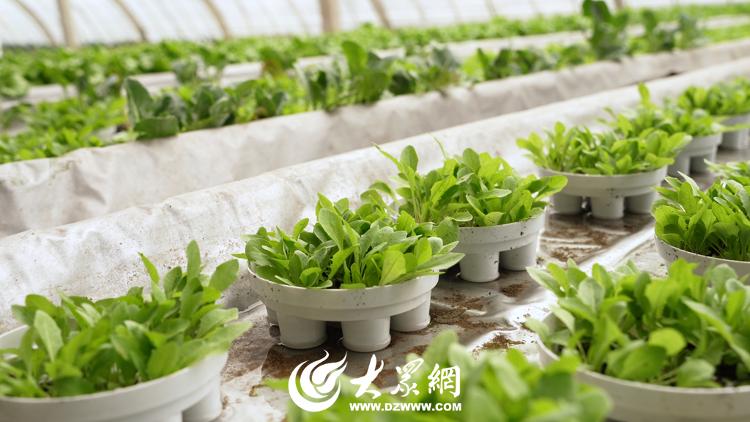 仲冬时节,高兴镇国成家庭农场的水培大棚内暖意融融。一排排水培槽整齐排列,油麦菜、生菜、油菜、芹菜等各类叶菜青翠欲滴、长势喜人。于国成和妻子正忙着进行采收、整理和包装。
