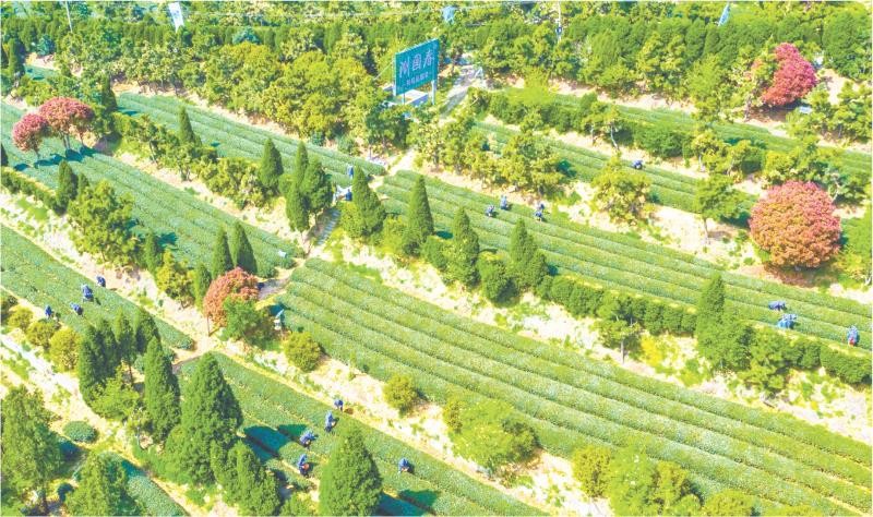 4月13日,在岚山区碑廓镇山东浏园生态农业股份有限公司的一处茶园里,茶农们正在抢采日照绿茶。