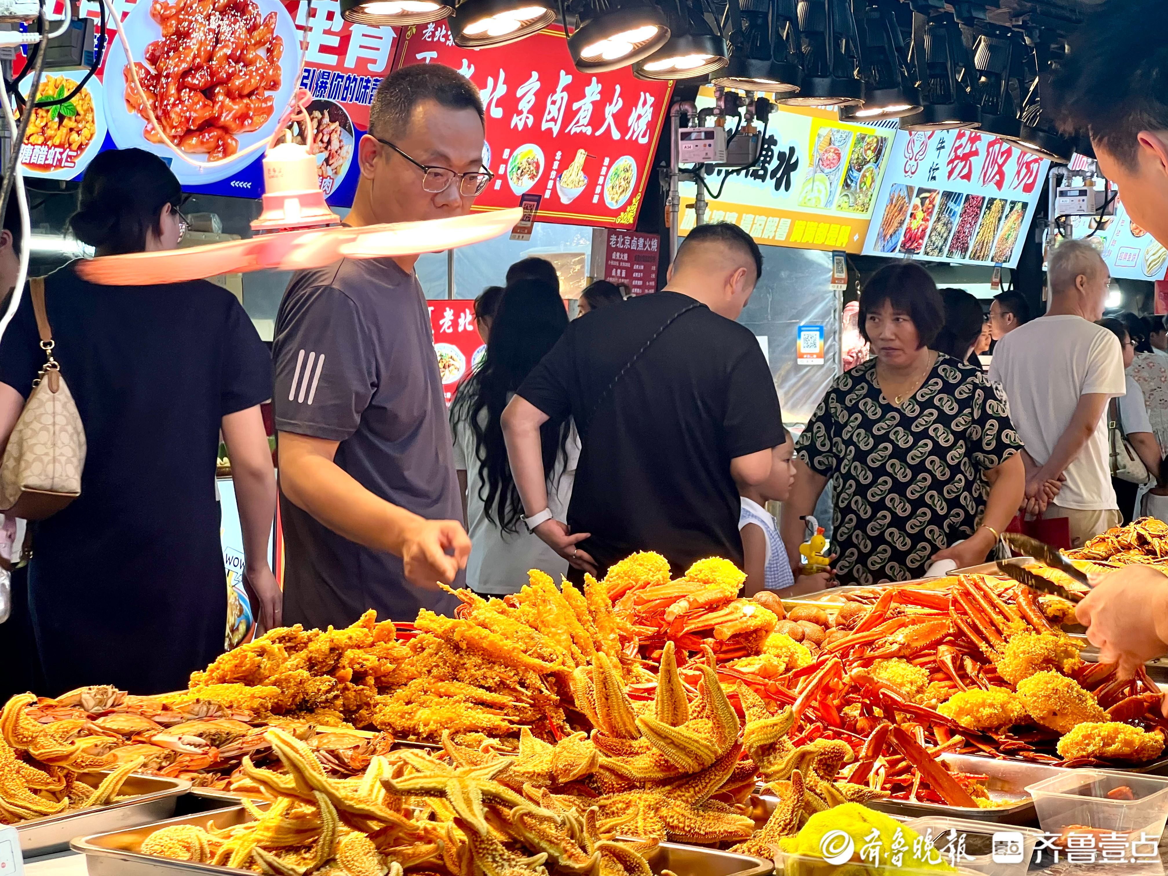 “这个夜市是今年6月份新开的,面积很大,活动比较多,小吃种类也挺多的。”市民刘先生带孩子一起边吃边逛。