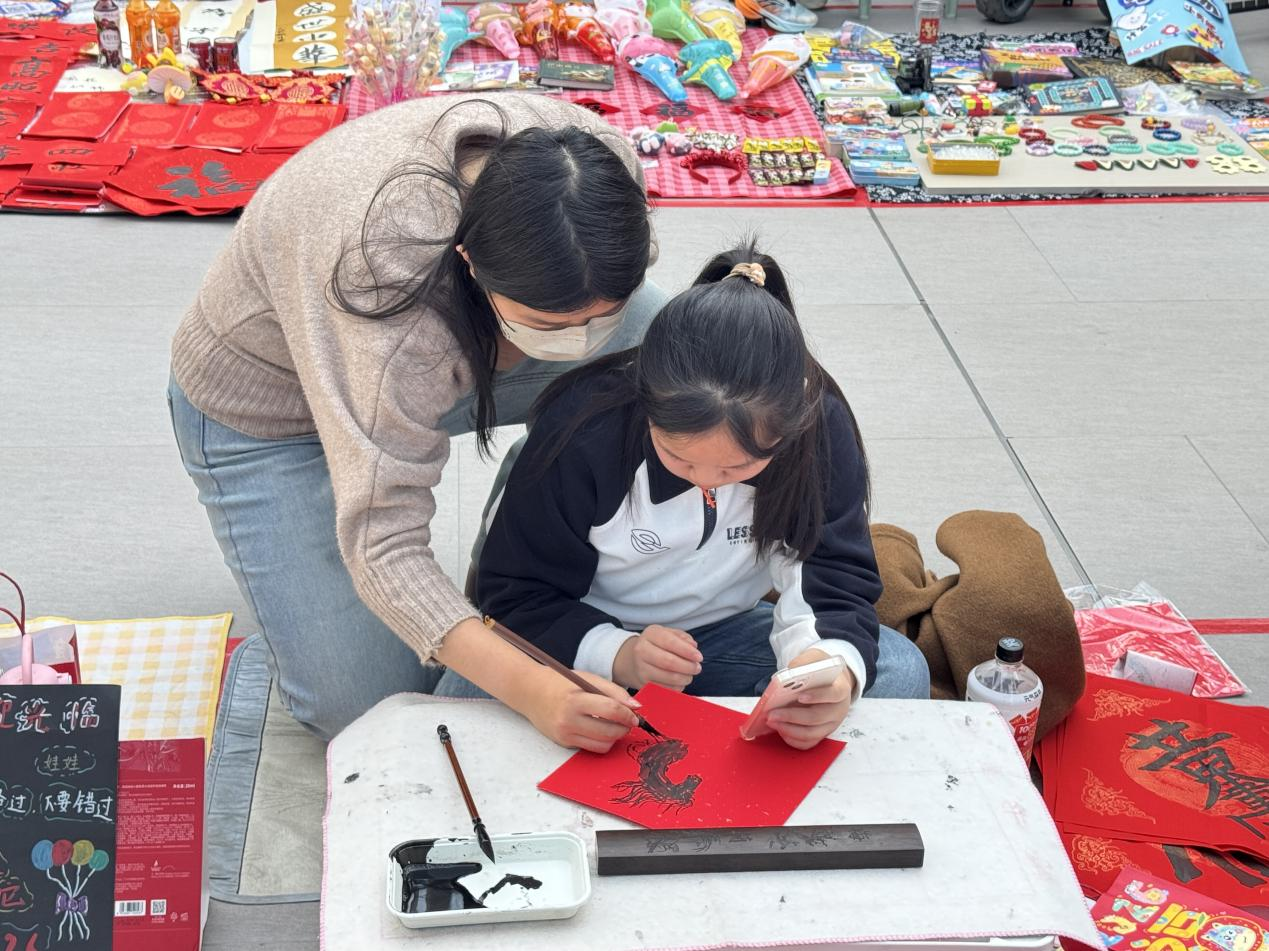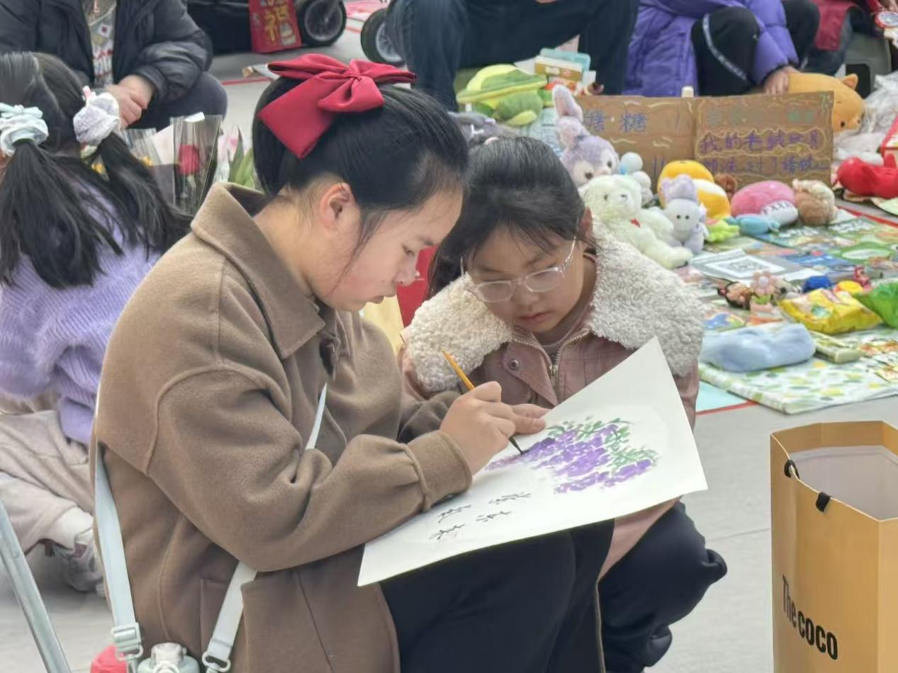 本次活动聚焦全年龄段市民需求,打造多元互动场景。在童趣书画大集专区,孩子们变身元气“小业主”,开启创意摆摊新体验。小朋友们带着自己的书画作品、手工艺品现场展示、交流,在实践中锻炼表达能力与创造力,用童真笔触描绘新春愿景,让艺术启蒙与新春乐趣双向奔赴,成为活动现场一道活泼亮眼的风景线。