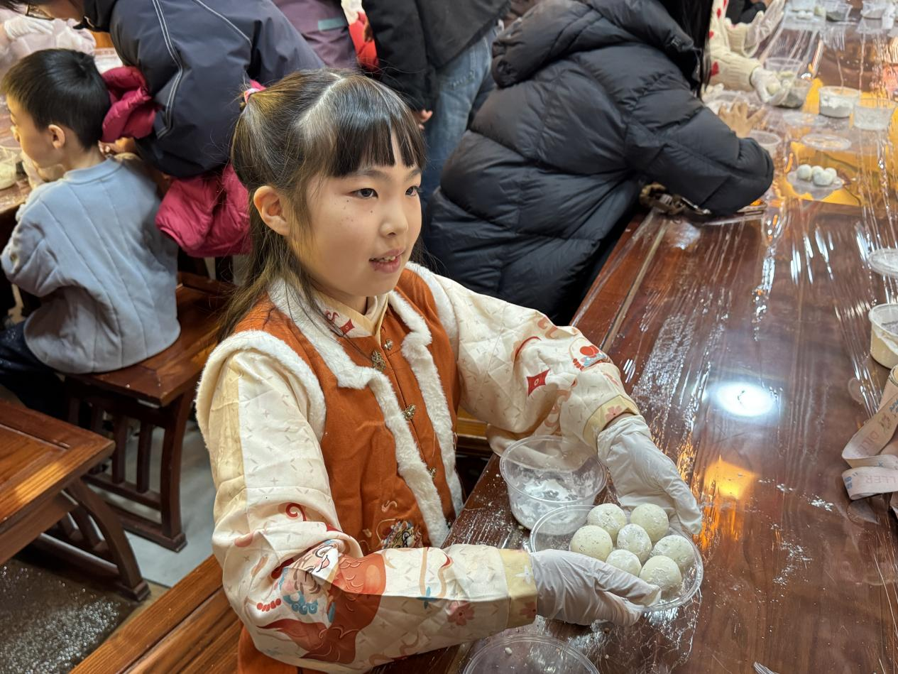 元宵的甜蜜,藏在亲手制作的乐趣里。糯米粉在碗中轻轻摇晃,裹着黑芝麻、花生碎的元宵馅渐渐滚圆,欢声笑语间,满满的团圆滋味扑面而来。现场还可以体验年画拓印,小朋友们手持工具,在传承人指导下完成拓印,将满载吉祥的年画带回家,为新年讨个好彩头。