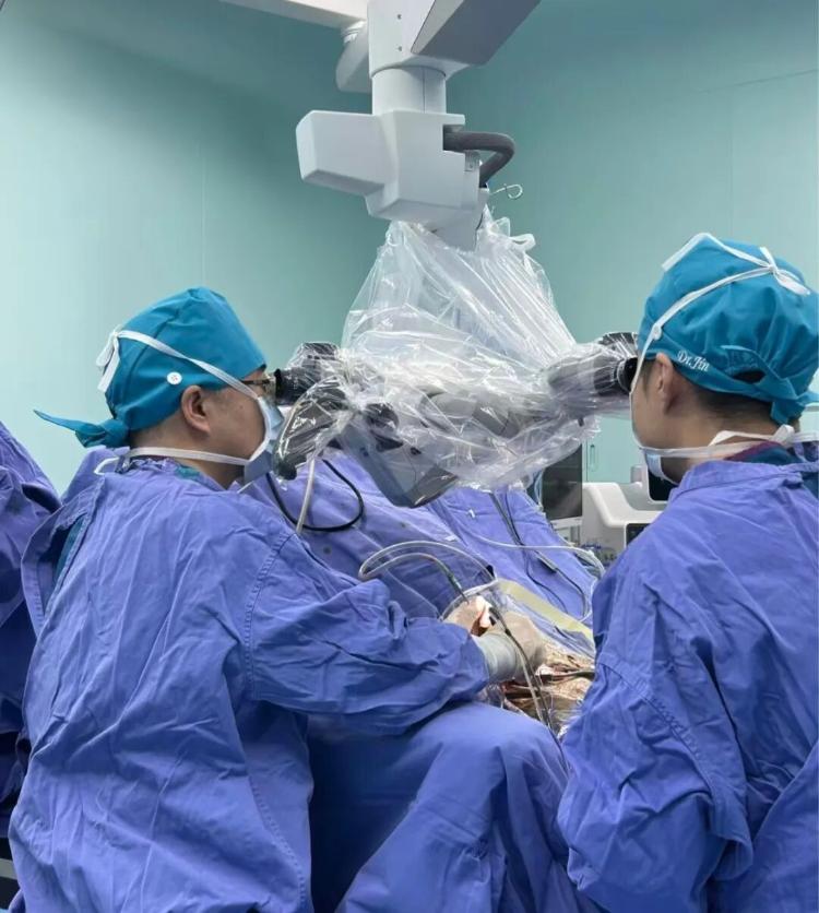 无影灯下,两场 “毫米级” 的精准攻坚随即展开。患者李先生(化名)近日来饱受耳鸣和头晕不适困扰,肿瘤已经压迫到面神经和脑干等重要结构。传统手术极易损伤面神经,导致术后眼睑无法闭合、口角歪斜等永久性面瘫。手术中,吉大一院神经肿瘤外科许海洋手术团队与吉大一院日照医院神经外科副主任医师曹军手术团队默契配合,启用术中神经电生理监测技术,实时捕捉面神经功能信号,在神经与血管交织的狭窄间隙中稳步操作,凭借丰富经验和精准手法,一点点剥离肿瘤组织。历经四个小时的精细操作,肿瘤被完整切除,面神经保留完整。麻醉苏醒后,李先生听从医护人员指引自然微笑、闭合双眼,面部活动一切正常。