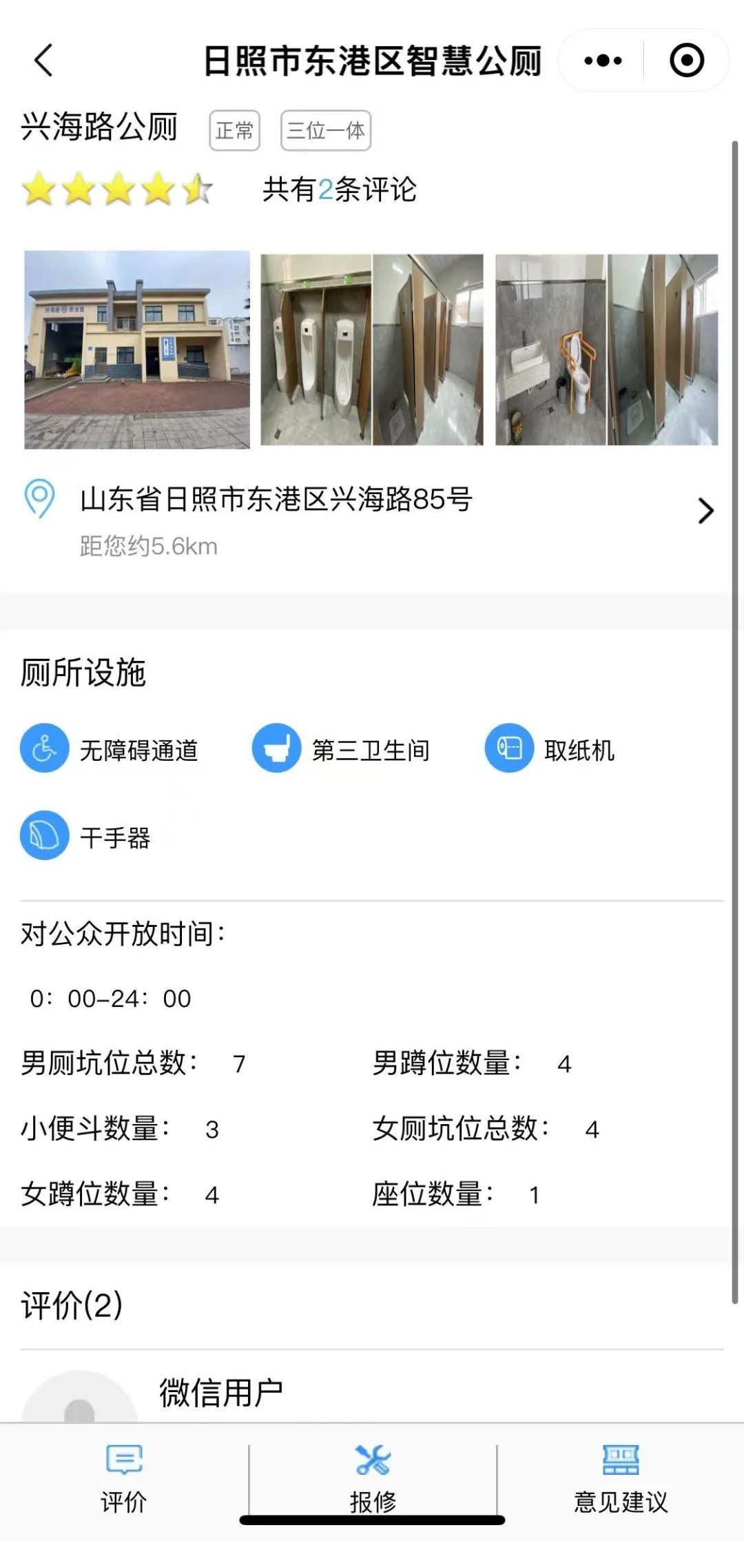 公厕是现代化城市公共基础设施的重要组成部分,是城市正常运转和百姓日常出行的重要保障,也是展示城市良好形象的靓丽名片。为提升城市功能,保障和服务民生需求,区城市管理和综合行政执法局借助移动互联网和大数据等技术,研发推出“东港智慧公厕”小程序,方便本土市民和外来游客解决“寻厕难”的问题,让居民的“方便”更加方便!目前,在“东港智慧公厕”小程序内,能搜索到东港区范围内的131座环卫管养公厕。(来源 东港区城市管理和综合行政执法局)