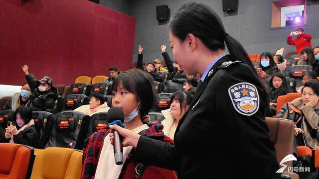 电影放映前后,民警们走进影厅,在银幕前进行了一场简短而实用的安全知识“微宣讲”。“冬季用电安全要注意哪些?”“遇到陌生电话要求转账怎么办?”民警们用生动的案例和简洁的语言,向观众传递了重要的安全防范知识。“今天我陪着我爸爸妈妈一起来看了我非常喜欢的电影,然后还听到了警察叔叔阿姨给我们讲了很多很多的安全防范知识。在活动中我也积极回答问题,得到了我非常喜欢的小玩偶,我非常开心。”来观看电影的秦嘉艺笑着说道。