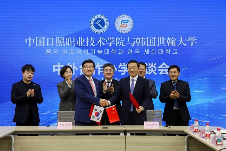 10月24日,日照职业技术学院在天润楼一楼会议室举行与韩国世翰大学中外合作办学座谈会。世翰大学名誉校长李昇勋、国际交流院院长李银嬉、国